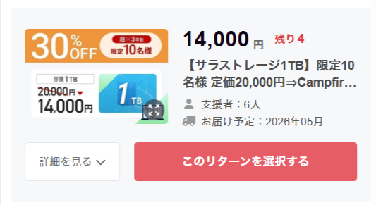 クラファンの強みは、支援者が先行者優位を獲得できることです。早い段階でリスクを承知で支援してくれる方々に対しては、「超早割」のような大幅な割引リターンを用意するのが効果的です。